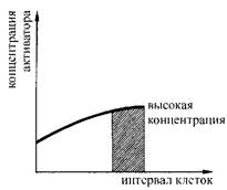 Рис. 9. В одинаковых, но не связанных между собой клетках образуется одинаковая концентрация химического вещества