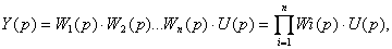 При последовательном соединении звеньев передаточная функция системы равна произведению передаточных функций звеньев, входящих в систему.