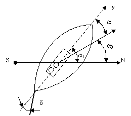 a - угол отклонения курса судна a1 от заданного угла a0.