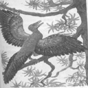 (на рисунке видно, что у него сохранились зубы в челюстях, пальцы на крыльях и удлиненный