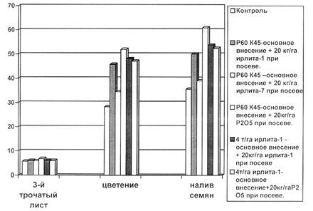 3. Р60К45-основное внесение + 20 кг/га ирлита-7 при посеве |