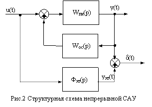 Если структурная схема непрерывной САУ сведена к виду (рис.2).