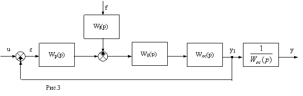 Пусть структурная схема САУ имеет вид, приведенный на рис.7. Приведем анализ САУ по каналу управления, если