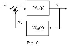 Для упрощения анализа и унификации расчетов типовую структурную схему рис.1 преобразуют к схеме с единичной отрицательной обратной связью и проводят анализ единичного контура в эквивалентной схеме (рис.3).