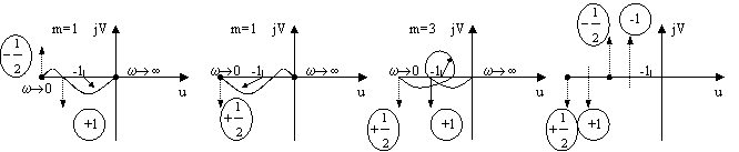 Пример АФХ устойчивых систем число переходов левее (-1, j0) равно m/2.