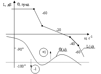 Примечание: фазовая характеристика ЛЧХ астатических систем дополняется монотонным участком +np/2 при w®0.