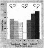 В ранних экспериментах Хьюбеля и Визеля было показано, что клетки коры со сходными свойствами образуют между собой связи, формируя вертикально организованные колонки. В экспериментах с проникающим электродом, при его продвижении вглубь зрительной коры, у всех клеток обнаруживалась одна и та же ориентация оси рецептивного поля, то же глазное доминирование и одно и то же расположение рецептивного поля. Мы уже упоминали колонки предпочтения определенного глаза (eye preference).Сигналы от обоих глаз разделяются в пределах слоя 4, где кортикальные нейроны получают сигналы только от одного глаза. В любой данной колонке, выходящей выше или ниже слоя 4, все кортикальные нейроны, даже те, которые получают информацию от обоих глаз, имеют одинаковое глазное предпочтение (либо левый, либо правый глаз). Таким образом, существуют колонки с предпочтительной, или по-другому, с доминирующей реакцией на сигналы от одного определенного глаза (глазодоминантные колонки). На рис.1 иллюстрируются различия в таком глазном доминировании в нейронах стриарной коры обезьяны. Клетки (всего 1116) подразделяются на 7 групп. Группы 1 и 7 получают информацию только от одного из глаз и находятся в слое 4 коры. В группах 2, 3, 5 и 6 эффект одного из глаз сильнее, нежели другого, и только в средней группе 4 оба глаза имеют примерно одинаково выраженные эффекты. Из гистограммы также ясно, что большинство клеток отвечают преимущественно на сигналы от правого или левого глаза.