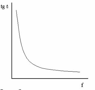 Рис.36. Зависимость тангенса угла потерь от частоты электрического поля в неполярных диэлектриках
