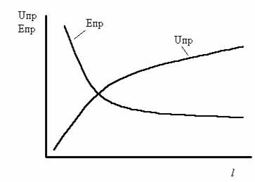Рис. 40. Зависимость напряжения пробоя и электропрочности от расстояния между электродами. |