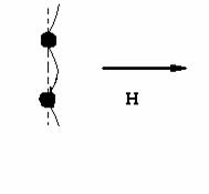 Рис. 49. Изгиб границ доменов, закрепленных препятствиями, под действием внешнего поля. |