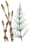 Описание растения. Хвощ полевой—многолетнее травянистое растение семейства хвощовых, с ползучим, глубока погруженным, буровато-черным корневищем. Стебли двоякого рода: спороносные, появляющиеся весной и по созревании спор увядающие, и летние, остающиеся до осени. Летние побеги прямостоячие или приподнимающиеся, длиной 10— 15см, зеленые, ветвистые, внутри полые.