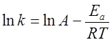Взаимосвязь между константой скорости реакции k и энергией активации Еа определяется уравнением Аррениуса: