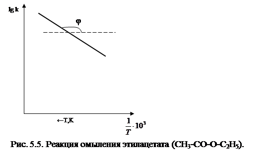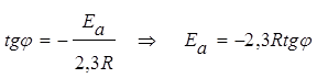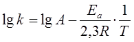 дает уравнение прямой линии. Знание констант скорости при нескольких температурах позволяет определить энергию активации данной реакции: