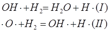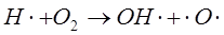 Образующиеся в реакции I радикалы обеспечивают развитие неразветвленной цепи, а атом кислорода, обладающий двумя свободными валентностями (реакция II), образует два радикала, начинающих разветвление. Возникает огромное количество свободных радикалов. «Размножение» радикалов приводит к лавинообразному течению процесса, которое может вызвать взрыв: