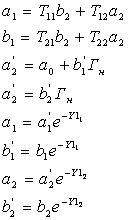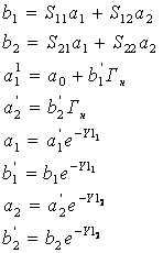 - соответствующие волны в сечениях генератора и нагрузки, то имеют место следующие две системы уравнений, связывающих эти величины: