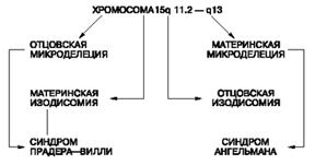 Рис. 5. Возможные механизмы развития синдромов Прадера-Вилли и Ангельмана