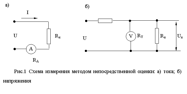 Для измерения тока и напряжения применяют метод непосредственной оценки и метод сравнения.