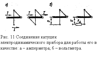 Вольтметры. Для измерения обе катушки соединяют последовательно (рис.11, б). Уравнение (15) для вольтметра примет вид: