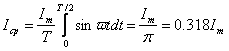 Выпрямительные приборы работают по схемам одно- или двухполупериодного выпрямления (рис.14, б) ток в течении положительного полупериода проходит по измерительной ветви (открыт диод Д1 и витки катушки миллиамперметра), в течении отрицательного полупериода – по защитной ветки (диод Д2 и резистор R). Обе ветви идентичны, сопротивление резистора R равно сопротивлению катушки миллиамперметра Ra . Через диод Д1 проходит пульсирующий ток i (рис.14, в), а показания миллиампертметра пропорционально постоянной составляющей тока или среднему значению Iср. Если измеряемый ток синусоидальной формы, то