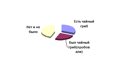 Но опрос показал, что у большей части населения нашего города нет и никогда не было чайного гриба, но у многих он все-таки есть. И самое малое количество – люди, которые пробовали этот напиток, но не захотели его заводить вновь.