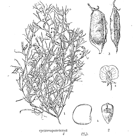 Среднеевропейская группа. Местная популяция, широко распространена в культуре в России, Башкиртастане и Татарстане, а также на Украине. Эта группа по морфологическим признакам близка к армяно-грузинской группе, отличается от нее неокрашенными цветками и отсутствием рисунка на семени. Высота растения 35—6O см, во влажные годы достигает 1 м и выше, главный стебель хорошо ветвится, облиственность хорошая. Цветки одиночные, белые, средние по величине. Семена клиновидные, с слабым вдавлением на. поверхности, желтовато-белые, иногда с зеленоватым оттенком, без рисунка, средине по величине, длина 7,1—8,7 мм, ширина 6,7—8,4 мм, толщина 4,5—5,9 мм. Вес 1000 семян 165—240 г (рис. ). Вегетационный период до полного созревания 80—90