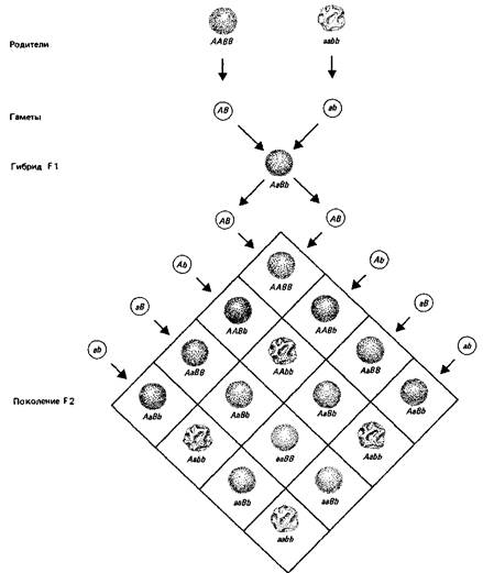 Число фенотипических классов будет больше, если один или оба признака не проявляют полного доминирования (в этом случае гетерозиготы отличаются от любой гомозиготы). Их будет меньше, если два гена действуют на один признак. Так, если бы оба гена А а В были нужны для развития окраски, то у гибридов F2 наблюдалось бы соотношение 9 окрашенных: 7 бесцветных.
