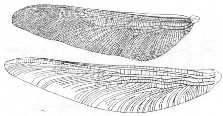 Представители этого отряда, жившие с Пенсильвания по триас, были крупными, иногда гигантскими насекомыми с размахом крыльев от 12 до 75 см (рис. 6). Это самые крупные из известных насекомых. По общему облику они были очень похожи на стрекоз-с большими глазами, длинным тонким телом и хорошо развитыми мандибулами. Жилкование крыльев у них было примитивное - имелись все крупные жилки, кроме субнодальной, а жилки Р и Е были разделены у оснований. Стрекозы произошли от Protodonata в Пенсильвании. По всей вероятности, Protodonata были быстрыми и агрессивными хищниками.