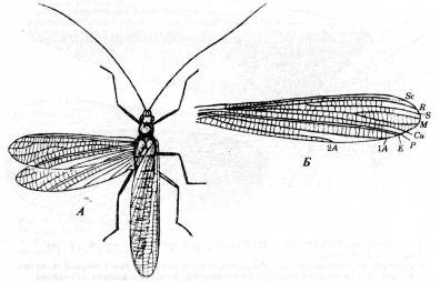 А. Переднее крыло (из Carpenter). Б. Заднее крыло (из Tillyard).