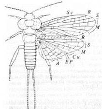 Рис. 13. Ранние представители отряда Ephemeroptera.