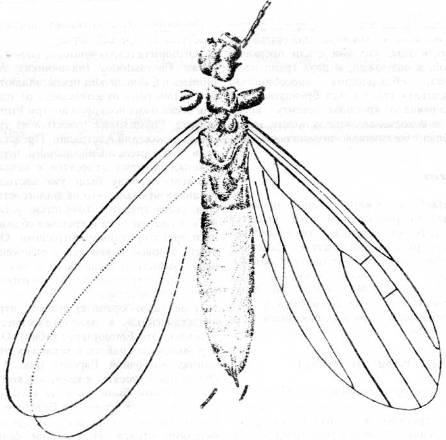 Рис. 14. Отряд Embioptera: Sheimia sojanensis из пермских слоев Архангельской области (По Родендорфу и др.)