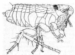 Рис. 20. Блоха Palaeopsylla clebsiana из позднеэоценового балтийского янтаря. (Из Родендорфа и др.)