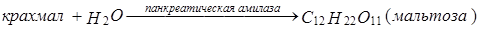 Переваривание углеводов начинается в полости рта, где слюнная амилаза, (птиалин) действует на крахмал и гликоген, превращая их в смесь Д-глюкозы, мальтозы и олигосахаридов. Переваривание углеводов завершается в тонком кишечнике, где переваренный под действием птиалина крахмал подвергается дальнейшему воздействию панкреатической амилазы, конвертируется в мальтозу. В конечном итоге вся мальтоза под действием маль-тазы конвертируется в глюкозу.