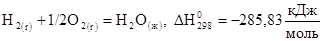Термохимическое уравнение реакции синтеза 1 моля воды имеет вид: