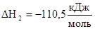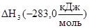 По приведенному равенству нетрудно вычислить одну из величин DН, зная две другие. Как известно, тепловые эффекты образования СО2 (DН1) и горения СО (DН3) определяются экспериментально. Тепловой же эффект образования СО (DН2) измерить невозможно, т.к. при горении углерода в условиях недостатка кислорода образуется смесь СО и СО2. Но теплоту образования СО можно рассчитать по известным значениям