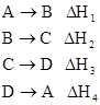 Если в результате ряда последовательных химических реакций система приходит в состояние, полностью совпадающее с исходным (круговой процесс), то сумма тепловых эффектов этих реакций равна нулю, т.е. для ряда реакций