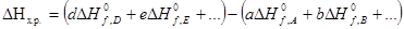 Согласно закону Гесса тепловой эффект реакции равен сумме энтальпий образования продуктов реакции за вычетом суммы энтальпий образования исходных веществ. Для реакций вида