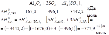 Для реакции взаимодействия кристаллического оксида алюминия и газообразного оксида серы (VI)