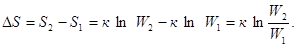 - коэффициент пропорциональности (к – постоянная Больцмана), W – термодинамическая вероятность существования вещества или какой-либо его формы, т.е. число возможных микросостояний, соответствующих данному макросостоянию вещества.