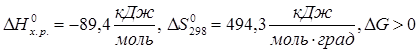 , то процесс невозможен как в стандартных, так и в иных условиях. По изменению энергии Гиббса от -41,8 до 41,8 кДж/моль нельзя сделать заключения о возможности протекания процесса в стандартных условиях, но вещества относятся к пожароопасным, хотя эти свойства у них появляются в условиях, отличных от стандартных (например, во время пожара).