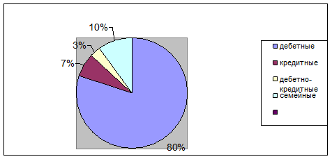 Банковская пластиковая карта – это одна из разновидностей финансовых карт, которая является персонифицированным платежным средством, предназначенным для оплаты товаров, услуг и получения наличных денежных средств в банках и банковских автоматах (банкоматах). На рисунке 2.3.1 представлен объем пластиковых карт выпущенных банком в 2009 году.