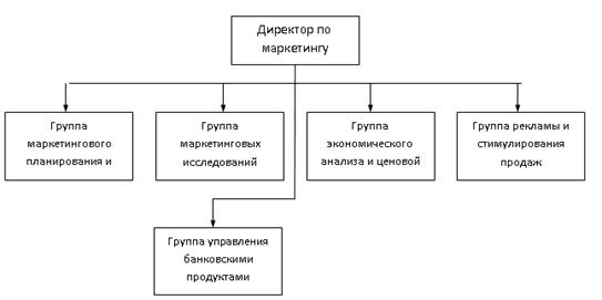 Ему напрямую подчинены руководители групп департамента маркетинга, а в специальном отношении – директора департаментов, подразделений и служб, выполняющие маркетинговые функции и задачи в банке.