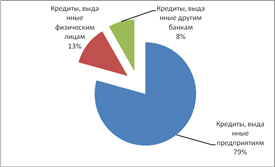 Таким образом, наибольшую долю в кредитном портфеле банка занимают кредиты юридических лиц, на их долю приходится 79% кредитного портфеля, 135 приходится на кредиты физических лиц и 8% - на кредиты другим банкам.