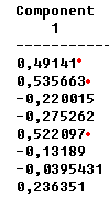 Ниже представлена таблица весовых коэффициентов первой ГК.