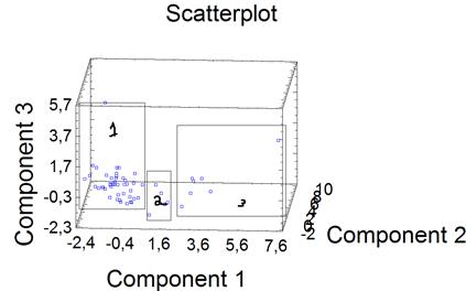 рис.5 Проекция исследуемых объектов в пространство трех ГК