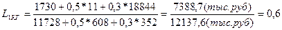 ТЛ кг = (1730+ 11) – (11728 + 608) = - 10595 (тыс. руб.)