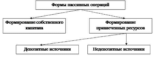 Пассивные операции — это операции, посредством которых формируются банковские ресурсы /вырезано/. Существуют следующие формы пассивных операций: формирование собственного капитала; формирование привлеченных ресурсов (рис.1).