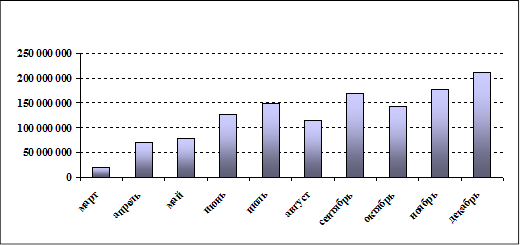 Рис. 5 Ежемесячный объем выданных ипотечных кредитов за 2006 г.
