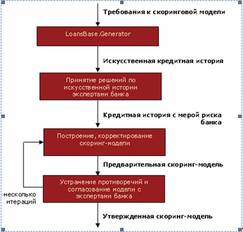 После формирования кредитной истории начинается построение скоринг - моделей. Этот процесс носит итеративный характер, в ходе которого устраняются противоречия, корректируются правила (в случае модели в виде дерева решений), в результате чего скоринговая модель утверждается.