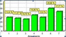 Динамика потребительского кредитования позволяет проанализировать суммы выданных кредитов в разрезе дней и торговых отделов, пики обращений по часам и дням недели, процент отказов службы безопасности и кредитного отдела и другое, что показано на рисунках 17,18,19.