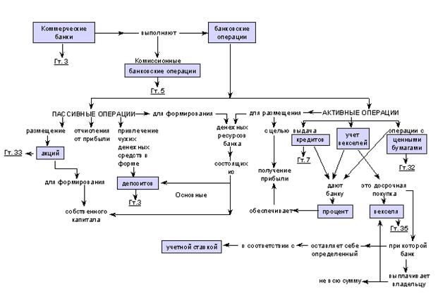 Коммерческие банки ведут активные и пассивные операции (рис.3). Пассивные операции связаны с формированием ресурса банка, а активные операции - это операции с размещением собственных и привлеченных средств.